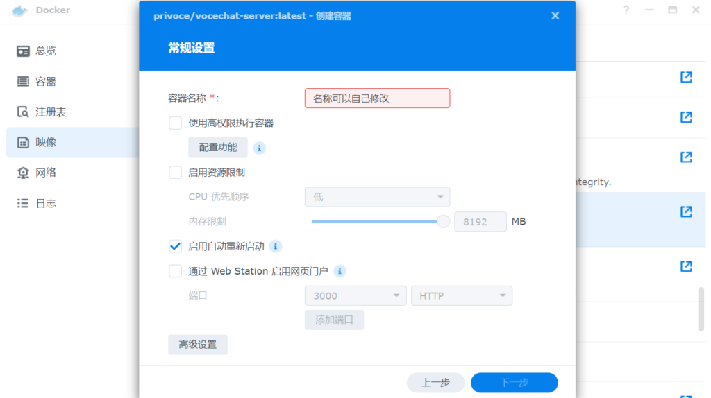 在镜像中找到刚刚下载好的privoce/vocechat-server,双击进行安装