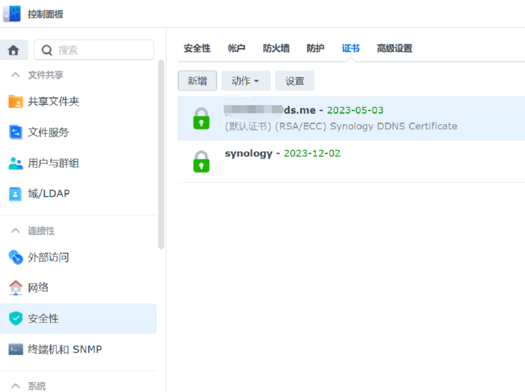 开启ddns还是不够的,还需要添加ssl证书。这步很简单
