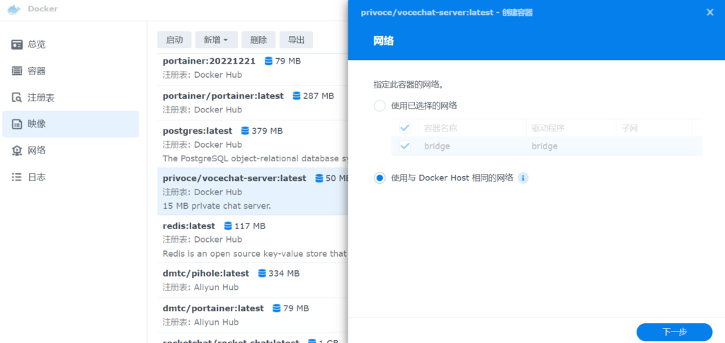- 如果打算使用https访问需要则要选择第二个,使用与Docker Host相同的网络